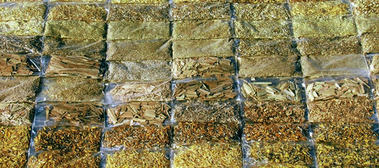 Collected spices and herbs in plastic bags